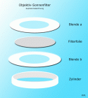 - Loch muss kleiner als Objektivdurchmesser und kleiner als die Fläche der darunter liegenden Filterfolie sein