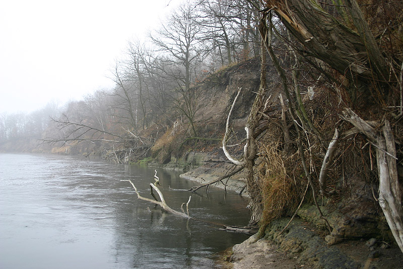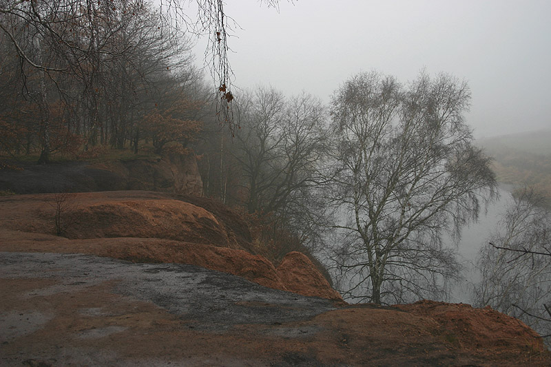 Ziel des Spazierganges war das ?Rote Ufer?. Hier verschlingt nach und nach die Mulde die Halden eines uralten Alaunbergwerkes. Am zweiten Bild kann man auch sehr deutlich erkennen, wie dieses Ufer zu seinen Namen kam.