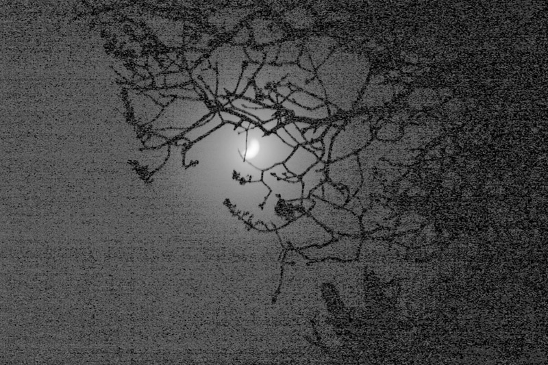 Zum Schluss habe ich den Mond im Nebel noch mal fotografiert. Ist zwar nicht viel darauf zu erkennen, sieht aber irgendwie schön aus.