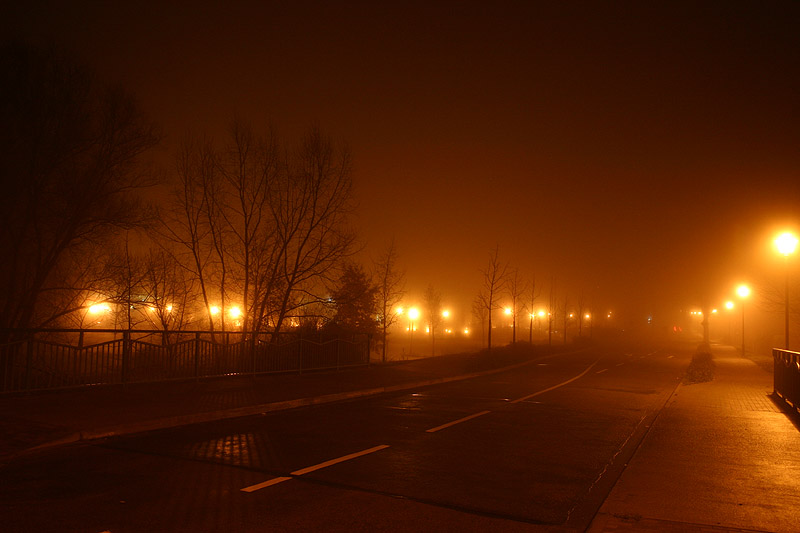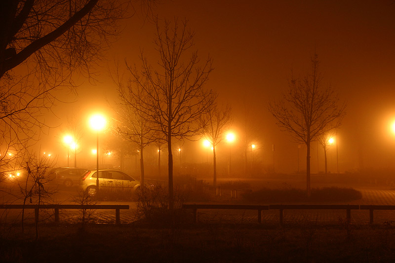 eigentlich hatte ich mal vor, auf meinem Dach eine Säule zum Beobachten zu errichten. Leider hat aber der Bürgermeister es sich in den Kopf gesetzt, sich um die Anerkennung eines neuen Rekord in punkto Beleuchtung in einem bestimmten Buch zu bewerben. So sieht das Lichtermeer um mein Haus herum aus (der Nebel hat etwas mit geholfen):