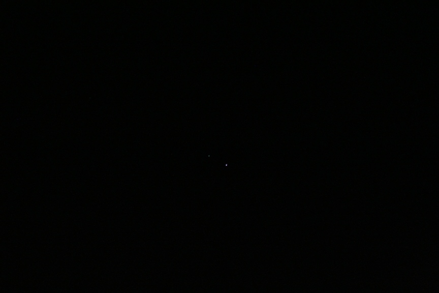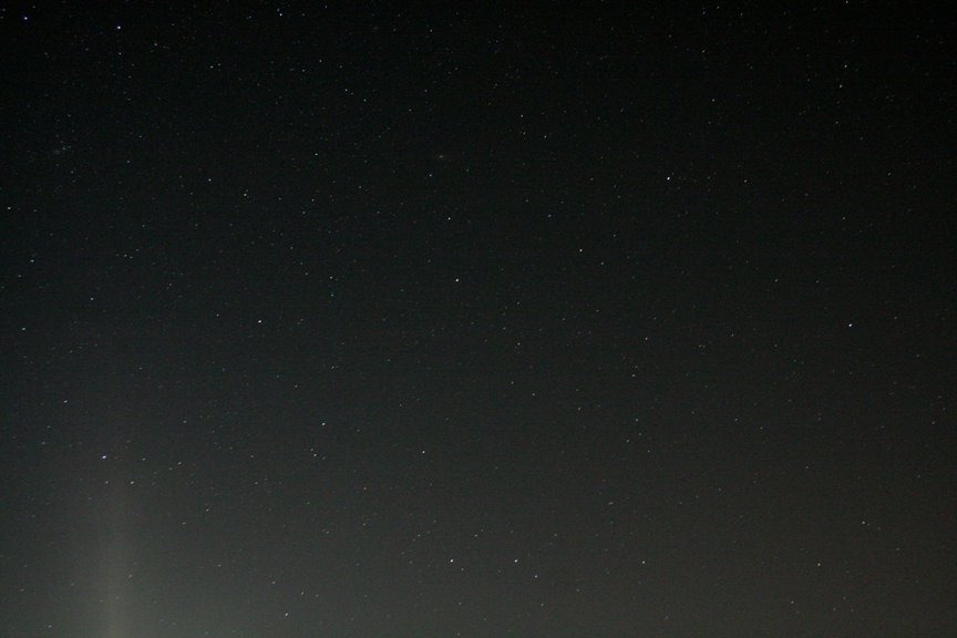Nein, ganz so nah war die "Störquelle" nicht, aber eigentlich war diese auch der Hauptgrund, warum wir gekommen waren: Der Mond bei den Plejaden.Bei Andromeda wunder ich mich aber gerade, was da links so hell war. Straßenlampe?