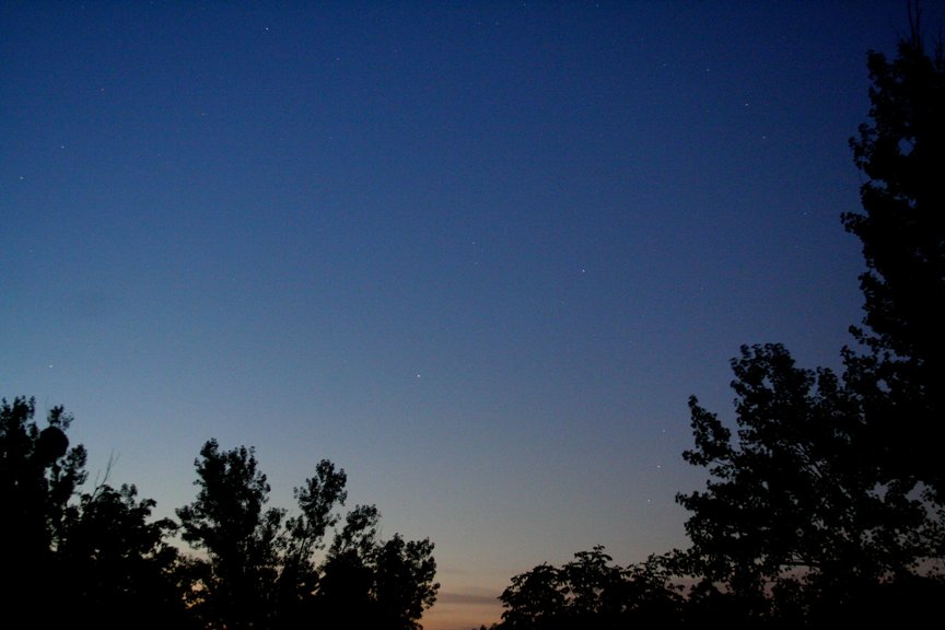 heute früh waren mein Vater und ich ja bereits kurz nach Mitternacht auf unserem Beobachtungsplatz um die Plejadenbedeckung zu beobachten (ausführlicher Bericht dazu kommt noch). Während wir auf den Eintritt bzw. Austritt der Sterne warteten und etwas nach der Bedeckung entstanden dabei mit der EOS 350D meines Vaters noch folgende Aufnahmen (das sind nur meine, mein Vater hat auch etwas herumexperimentiert):