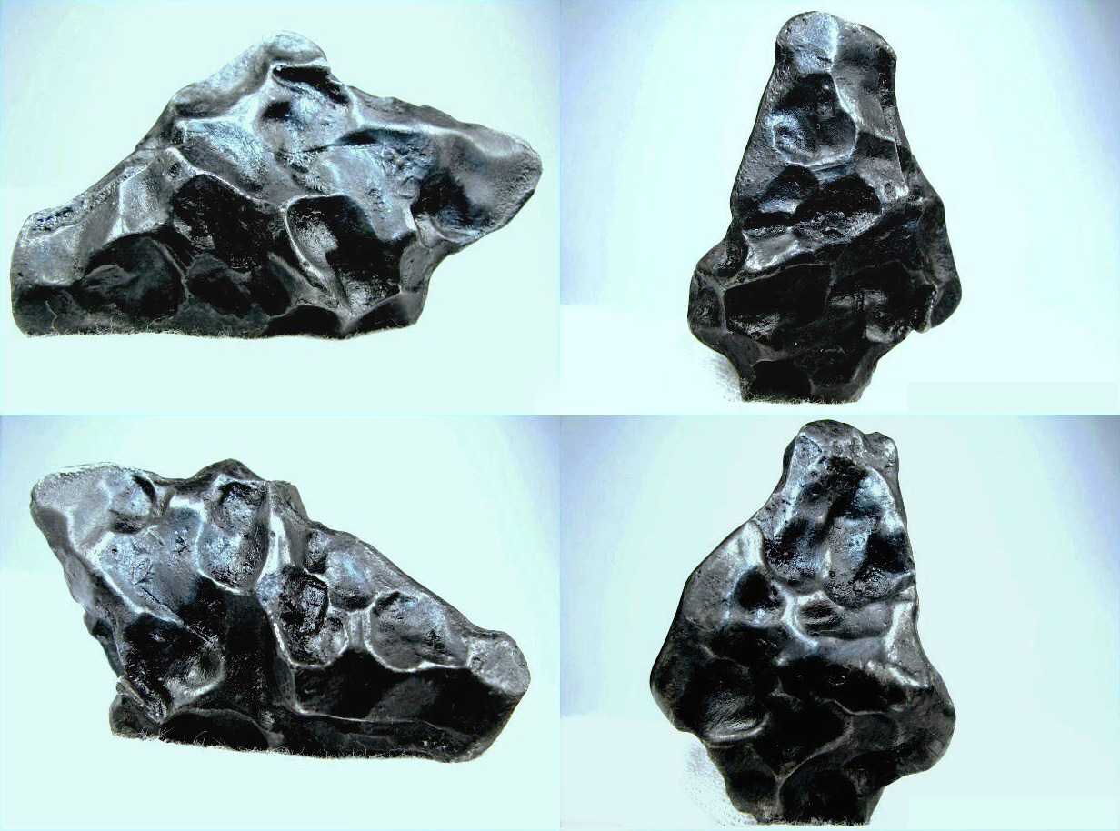 Ungefähr 6x4 cm groß und 70 g schwer - ein wunderbarer Eisenmeteorit (IIAB, ein Individuum!) vom beobachteten Fall 1957 aus dem ostsibirischen Sikhote-Alin Gebirge.