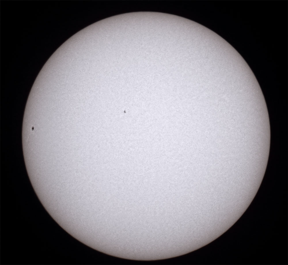 endlich mal klarer Himmel und die Sonne stand schon über den Bäumen. Da musste die Sonne mal wieder daran glauben. Leider war im WL nicht sehr viel los auf der Sonne, zwei kleine Flecke, das war es.